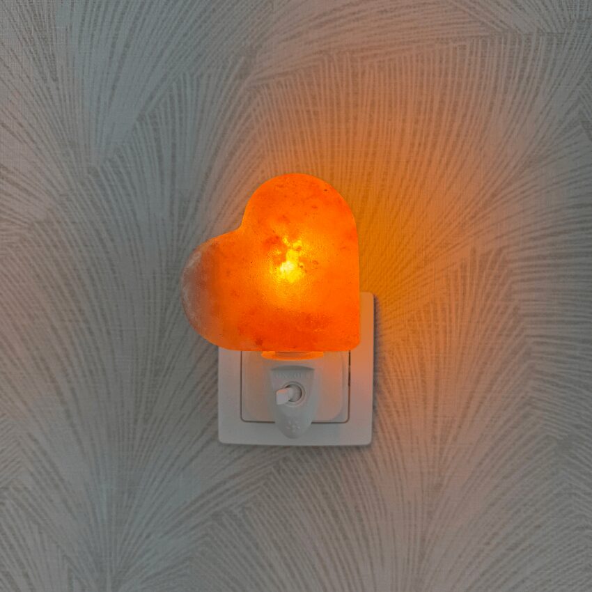 Dit prachtige Himalayazout nachtlampje hart, draagt bij aan een gezonde atmosfeer in de slaapkamer.