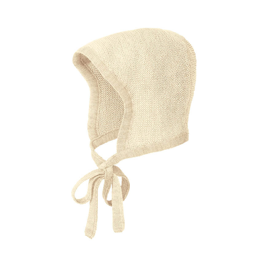 Heerlijk warm Disana strikmutsje gemaakt van 100% biologisch merinos wol.