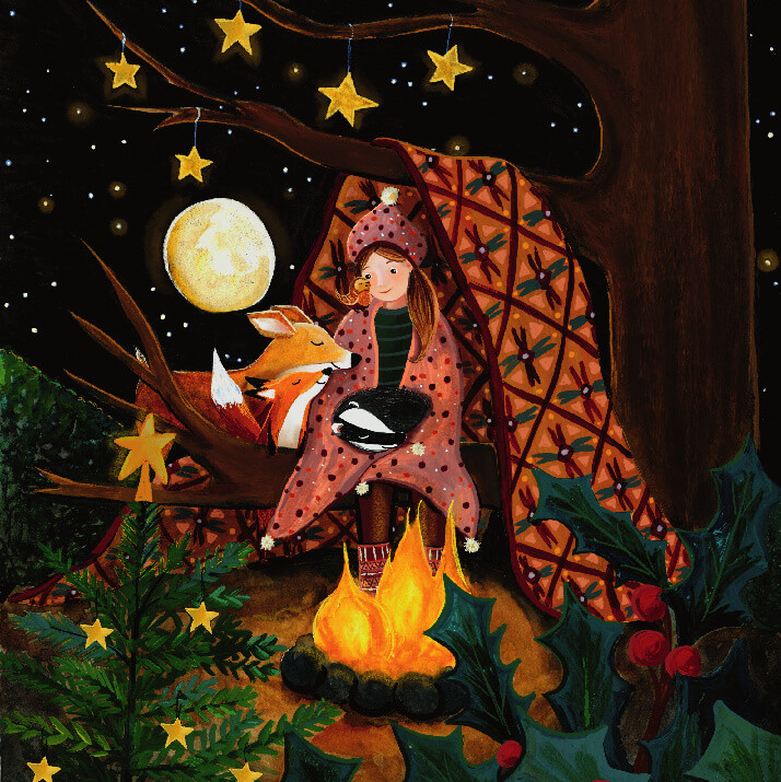 De Nederlandse ‘Illustrator under a blankie’ Esther Bennink creëert werelden die gevoelens van knusheid, geborgenheid en verwondering oproepen. Ze combineert voor haar illustraties verschillende materialen, met aquarelverf in de hoofdrol.