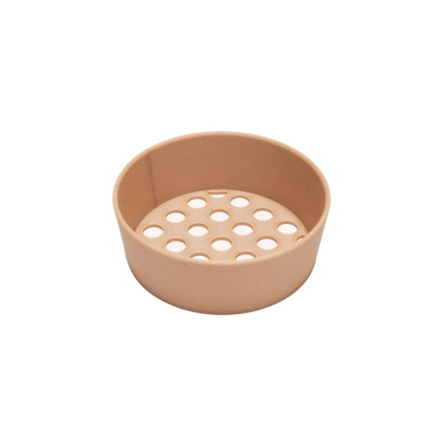 Het zeefje is gemaakt van een combinatie van gerecycled houtzaagsel en biologisch afbreekbaar plastic van plantaardige oorsprong. Hierdoor voelt het natuurlijk aan en is het een bewuste keuze voor duurzaam spelen.