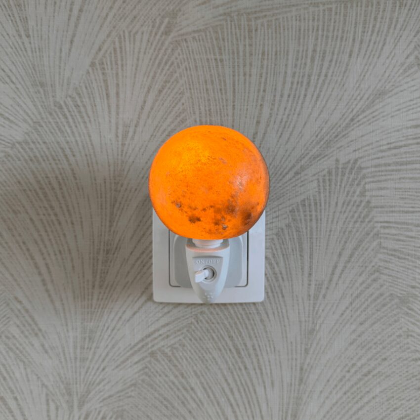 Dit prachtige Himalayazout nachtlampje planeet, draagt bij aan een gezonde atmosfeer in de babykamer.