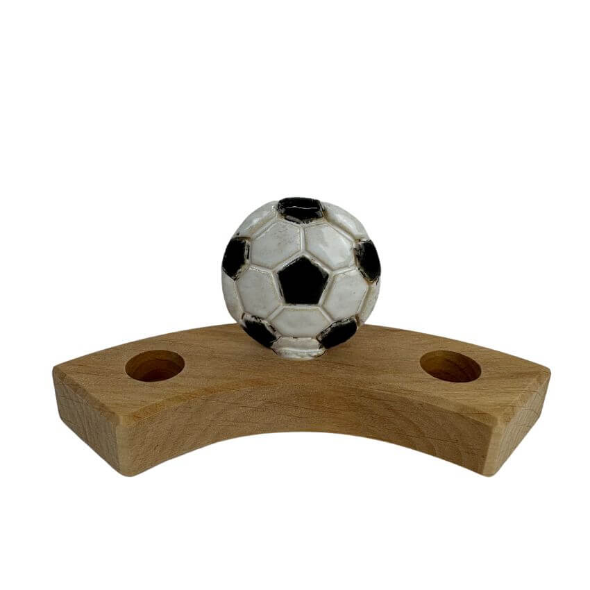 Voetbal steker van keramiek. Leuk voor op je seizoenstafel voor een (jarige) voetballer of in de periode rond een EK of WK. Past in de jaarring van Grimm’s en andere stekerhouders. Hoogte van de voetbal: +- 4,8 cm.