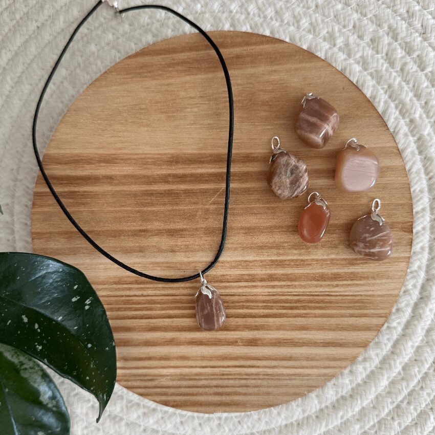 Beschrijving van Baby Natura Perzik Maansteen edelsteen hanger – Vrouwelijke Kracht & Intuïtie