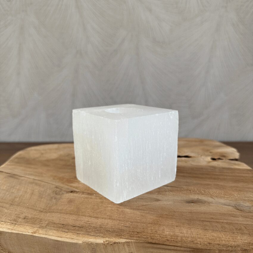 Beschrijving van Baby Natura Seleniet theelichthouder Kubus