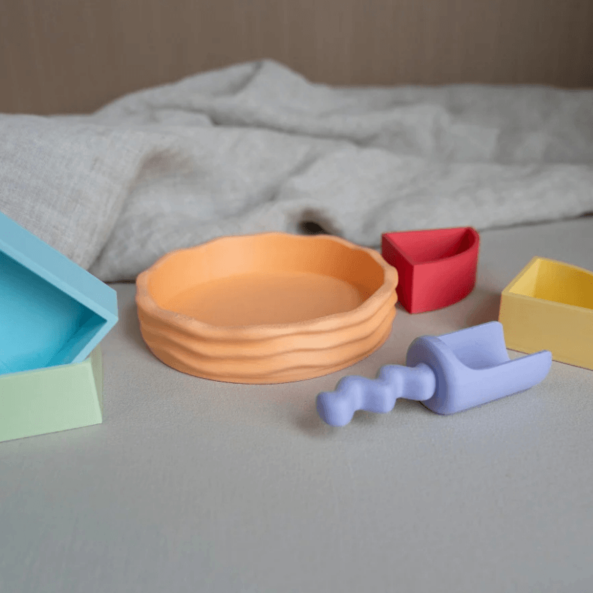 In een wereld vol prikkels biedt dit sensorisch speelgoed een moment van vertraging. Het scheppen, gieten en verplaatsen van materialen werkt kalmerend en helpt kinderen om volledig op te gaan in hun spel.